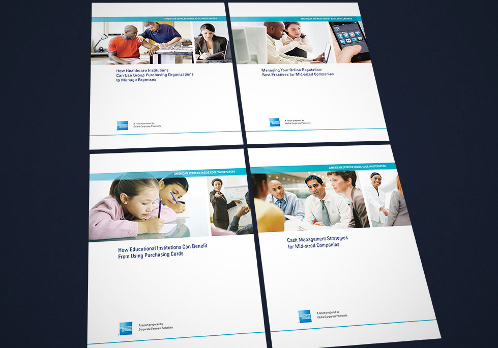 ResultsThe first whitepaper series was posted to the Amex Global Corporate Payments website in the summer of 2011, and it generated a lot of leads. This led to an unscheduled second round of whitepapers developed in the fall of 2011 and a third round in mid-2012. A new 16-document series of articles, case studies, tip sheets and product sheets was completed in the first quarter of 2013 and revised again in 2014 and 2015.