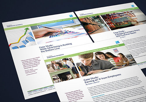American Express sales collateralContracted with Federated Media to design a series of whitepapers and a collection of articles, case studies and product sheets to post on the American Express website. Developed the original design templates and created the artwork for each individual document.Time frame2011-2015RoleGraphic designerClient contacts