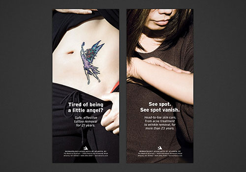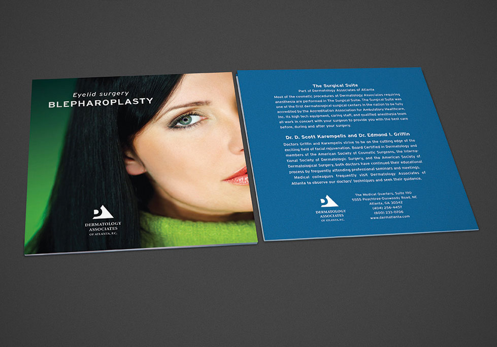 Dermatology Associates of AtlantaDesigned marketing materials for the practice's 10 specialty centers (recently through McCauley Services) including the Atlanta Center for Veins, Atlanta Cosmetic Surgery Center, Dermatology Center, Griffin Center for Hair Restoration and Research, Hair Removal Center, Laser Institute of Georgia, Psoriasis Treatment Center, Skin Medics™ Medical Spa, The Surgical Suite and Skin Care Center.Time frame1997-2014RoleGraphic designer, art directorClient contacts