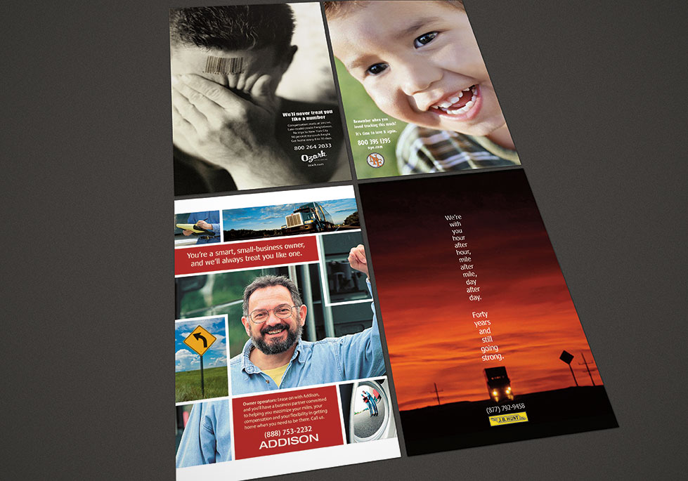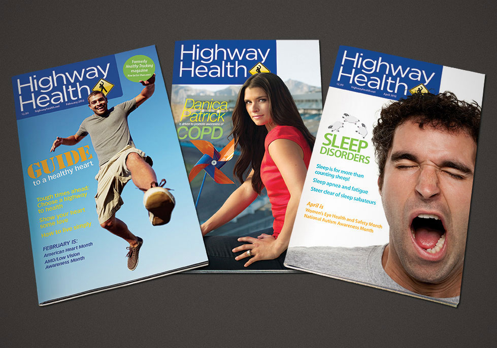Motor carrier industryDesigned the templates and individual issue artwork for health and recruiting magazines targeting the nation's over-the-road drivers and independent contractors. Also designed print and banner ads, collateral materials and exhibit signage for several of the magazines' trucking-related clients.Time frame1995-2013RoleGraphic designer, art directorClient contacts